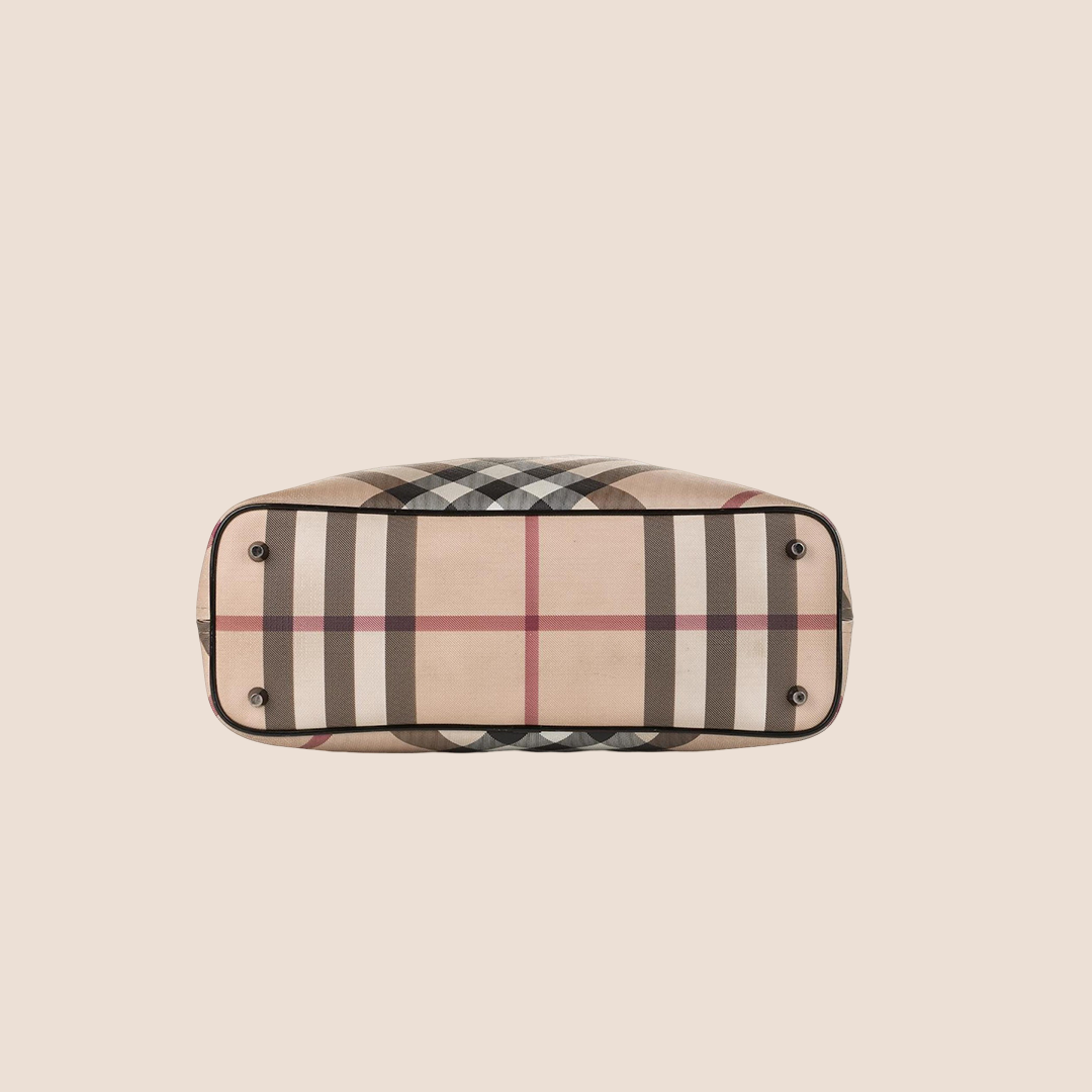 BURBERRY NOVA CHECK BLACK PATENT LEATHER TRIM TOTE BAG