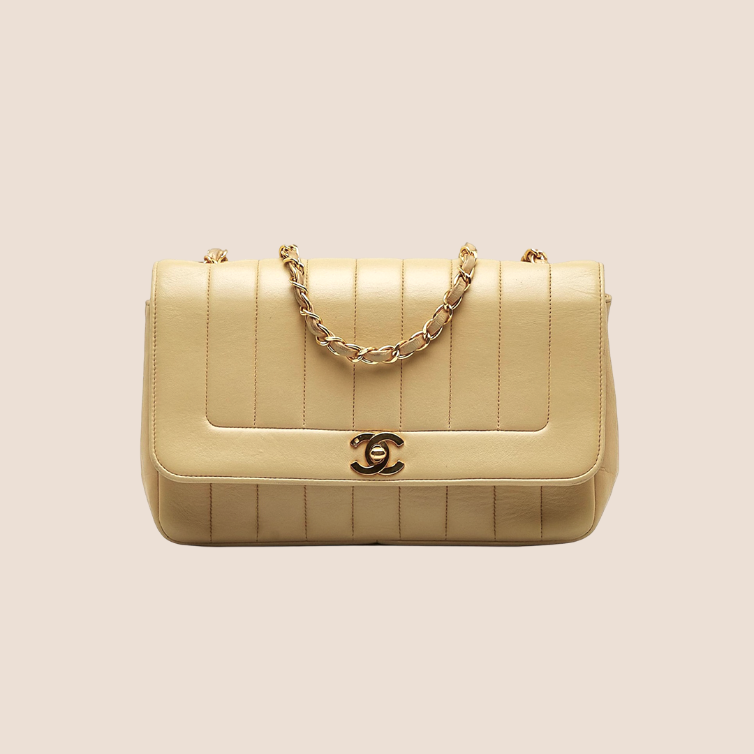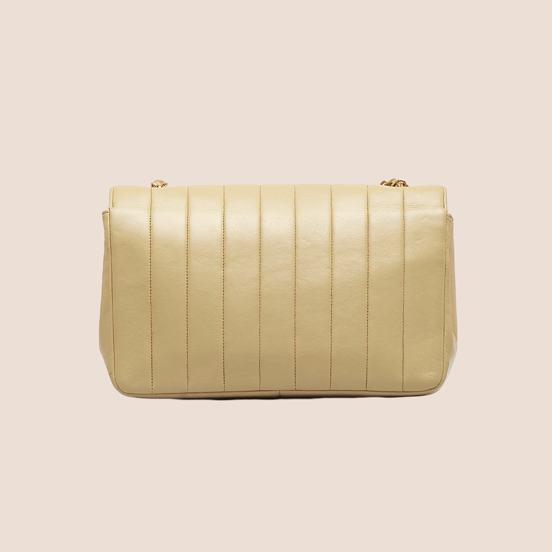 Vintage authentic Chanel CC Beige Vertical Lambskin Flap bag.