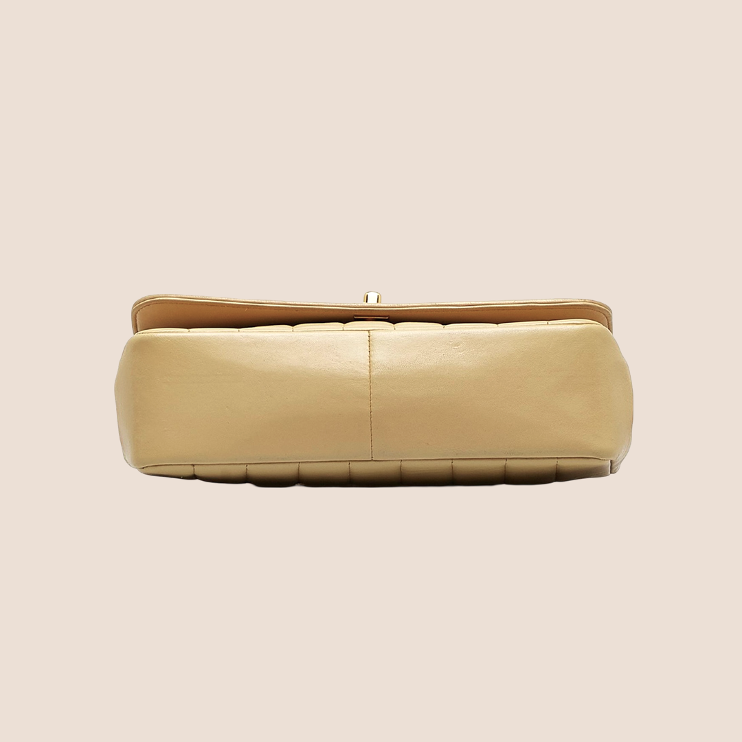 CHANEL CC BEIGE VERTICAL LAMBSKIN FLAP BAG