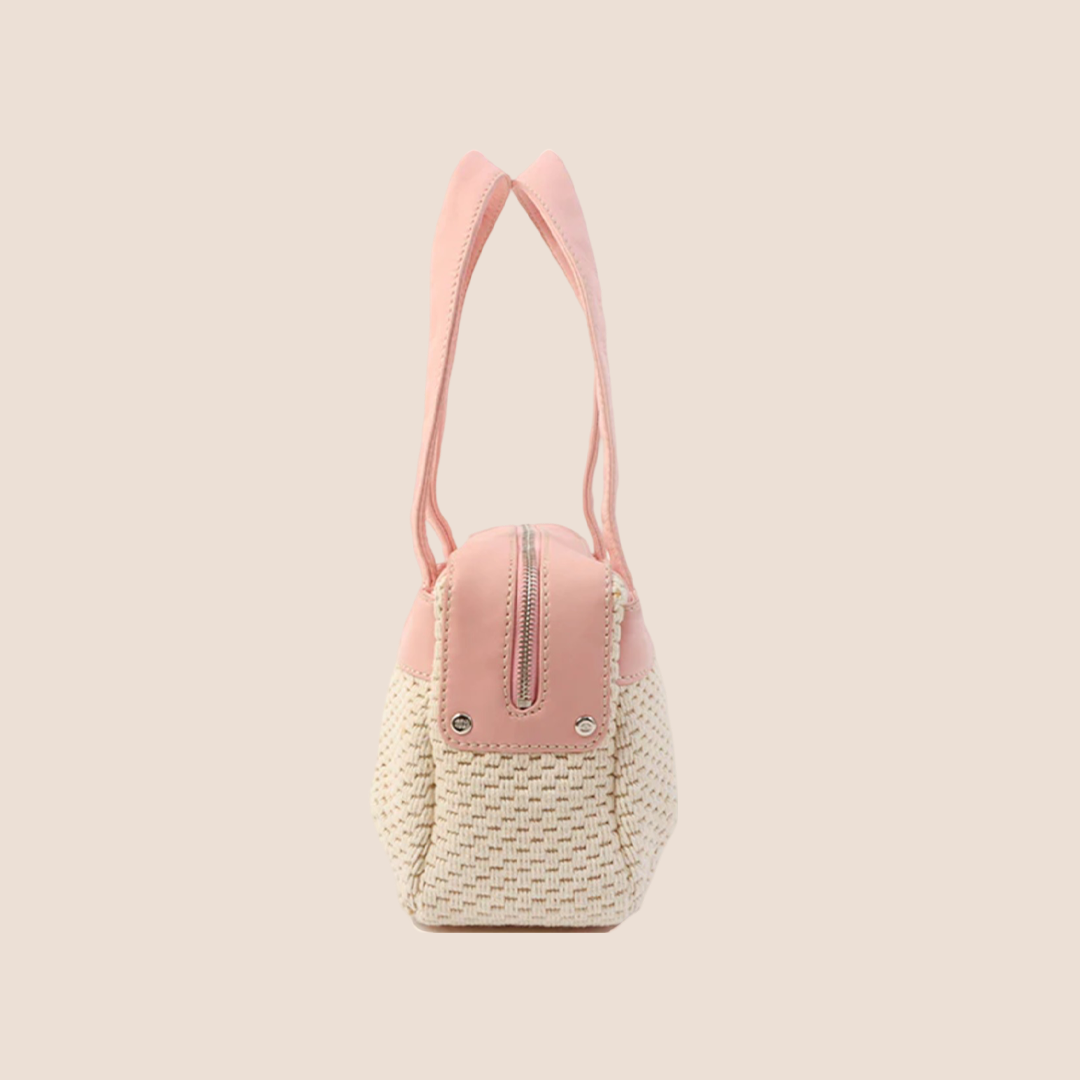 Vintage authentic Chanel 2005 LAX Pink Leather Cream Crochet Bowler bag.