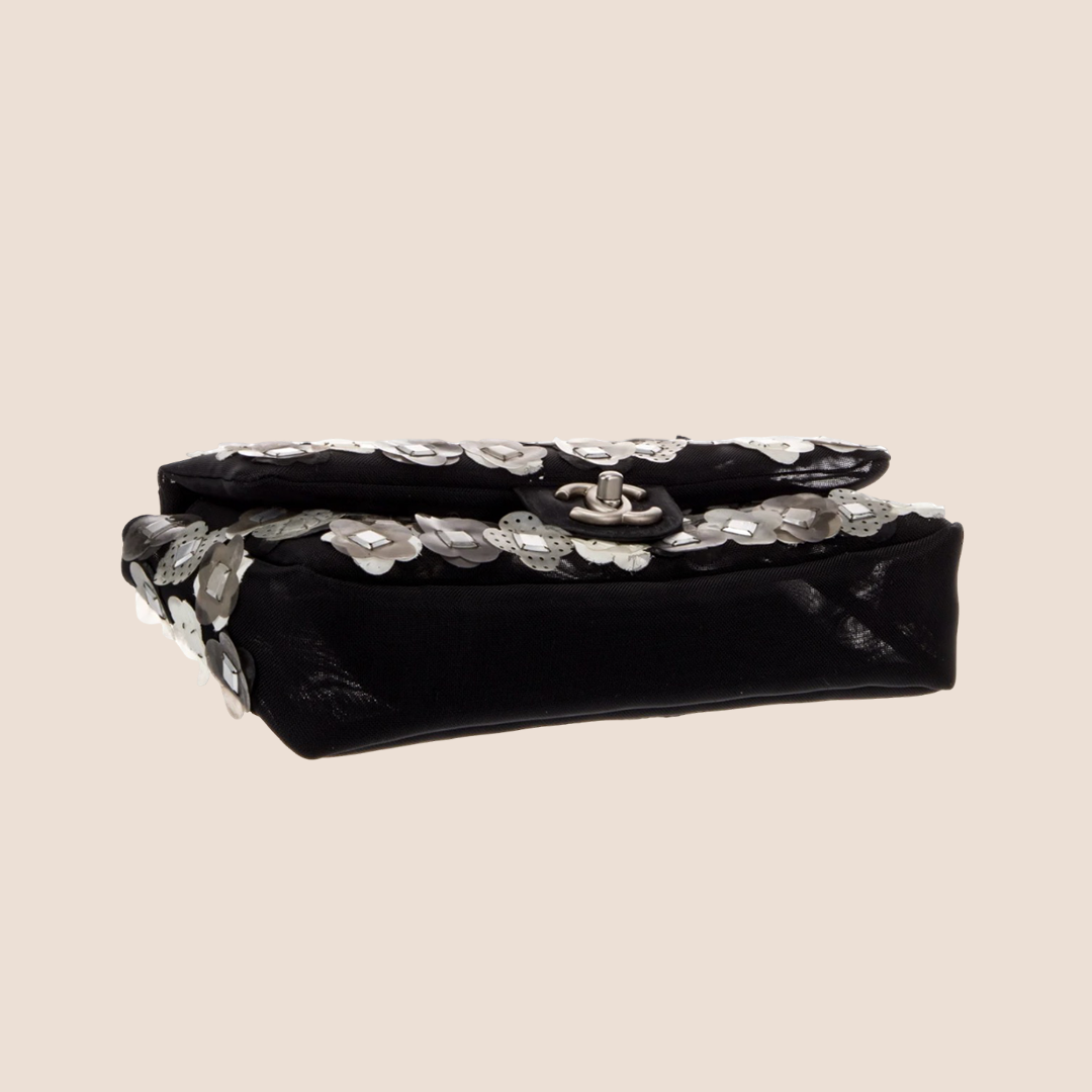 Vintage authentic Chanel 2008 Black & Silver Mesh Paillette Flap bag.