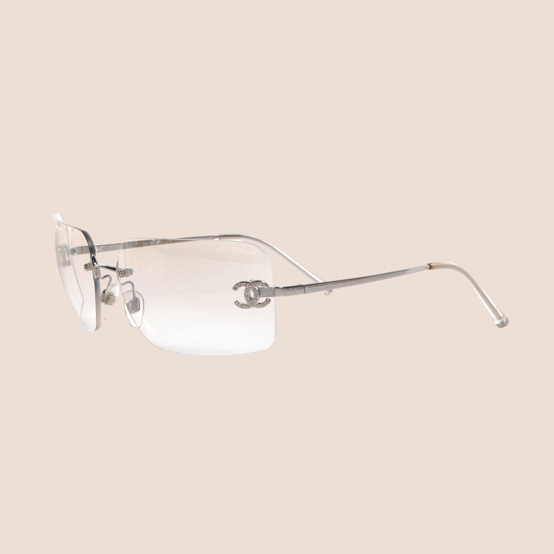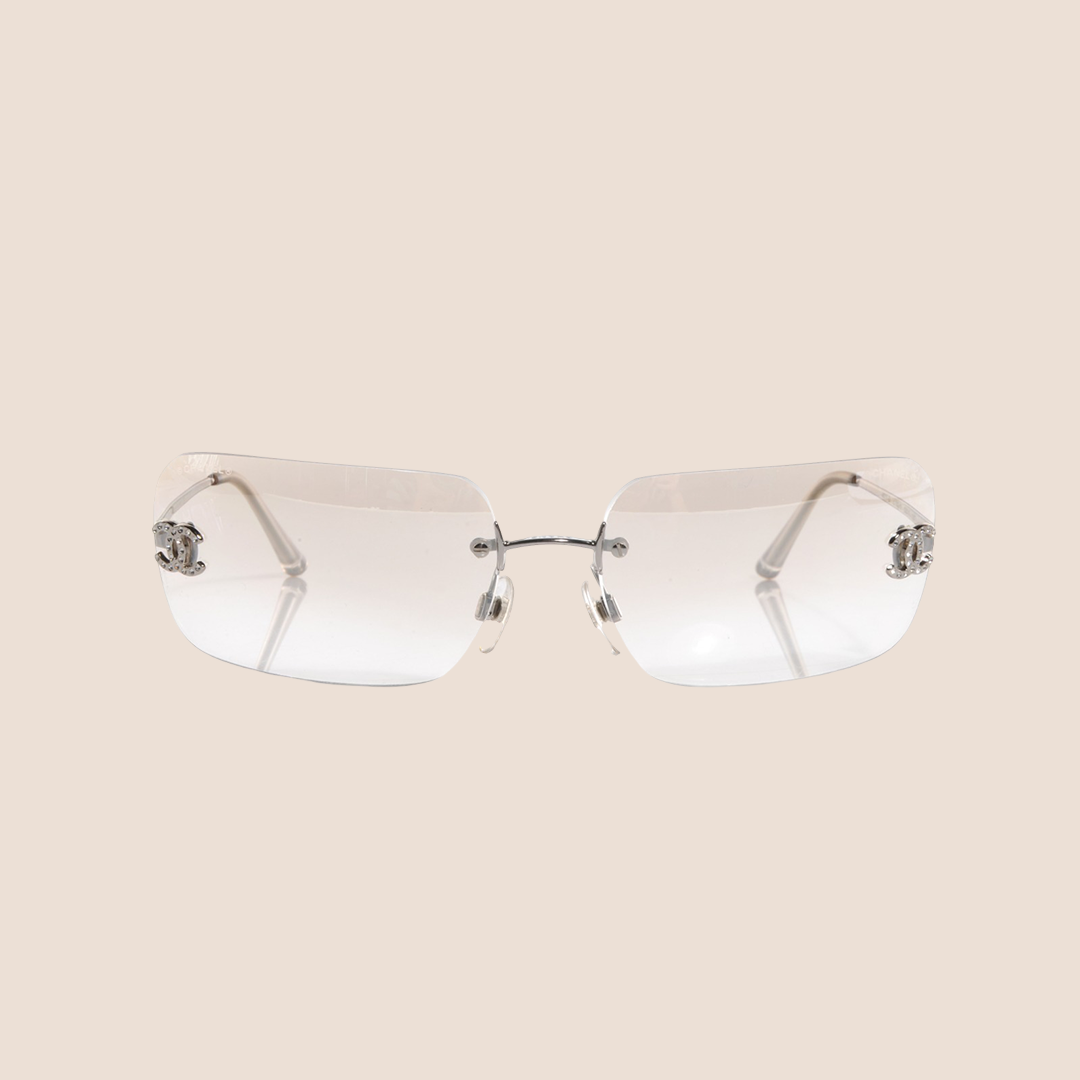 CHANEL 90s CRYSTAL CLEAR CC LOGO RIMLESS SUNGLASSES
