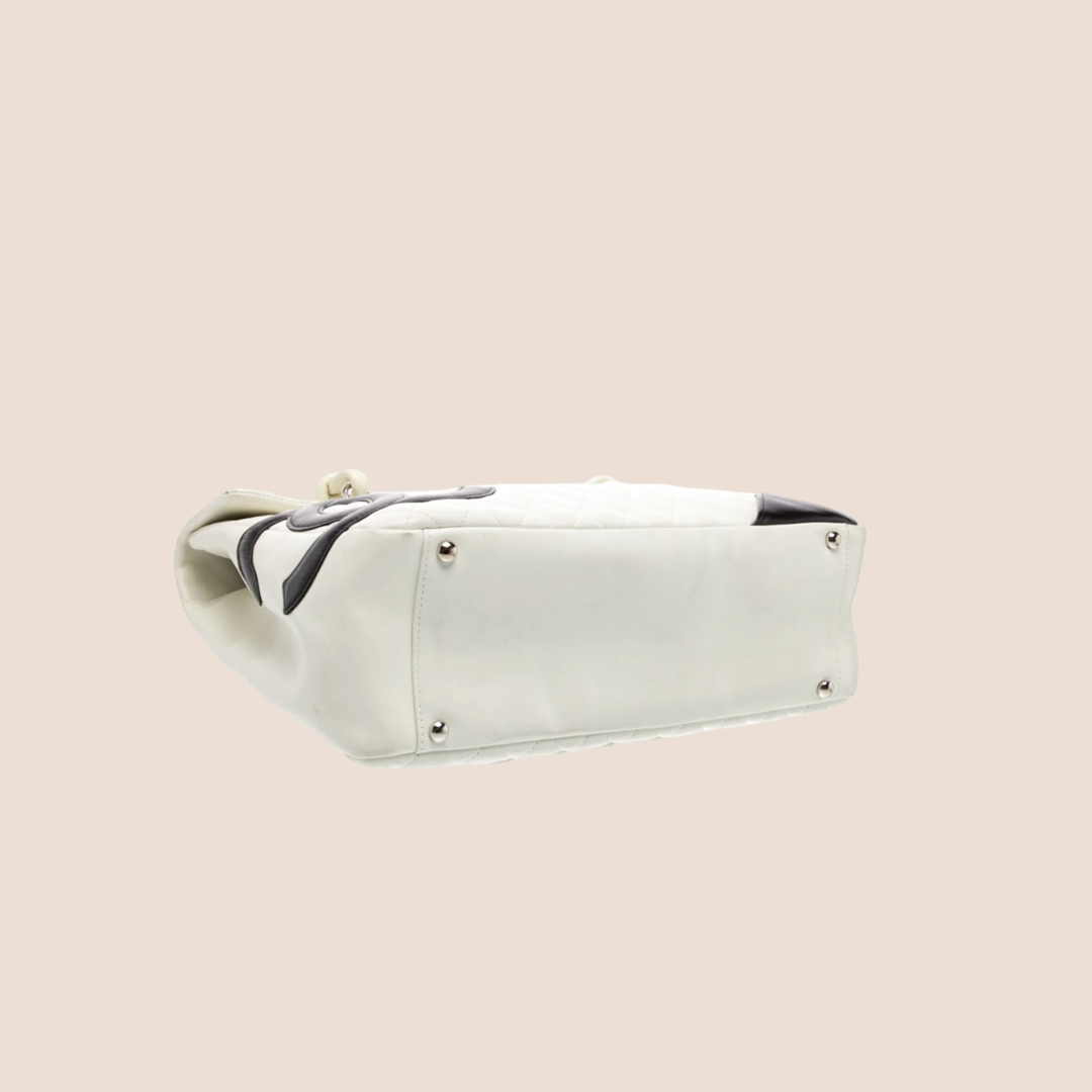 CHANEL CC WHITE & BLACK LOGO CAMBON FLAP TOTE BAG
