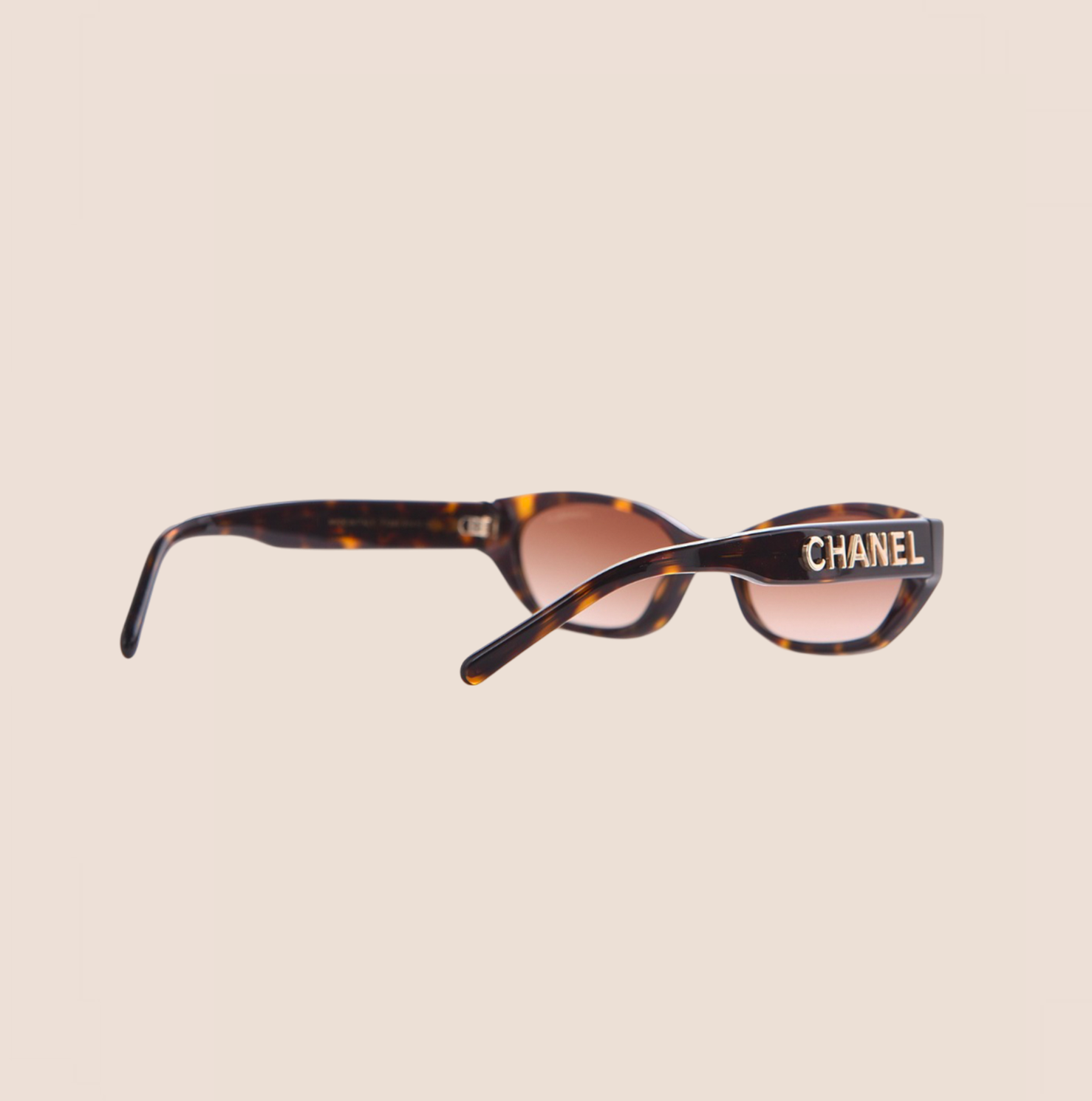 Vintage authentic Chanel Dark Brown Tortoise Rectangle Logo sunglasses.