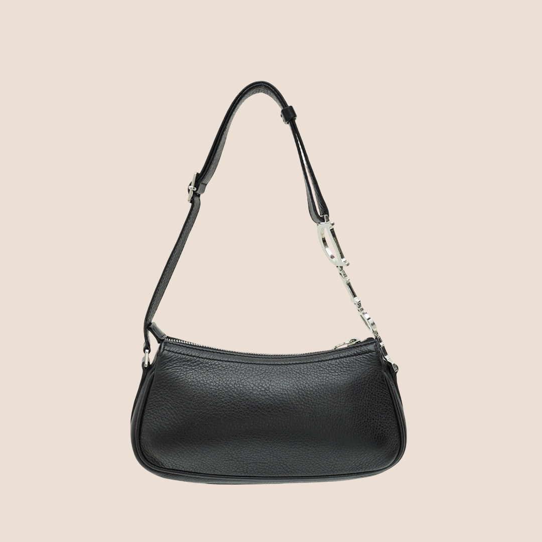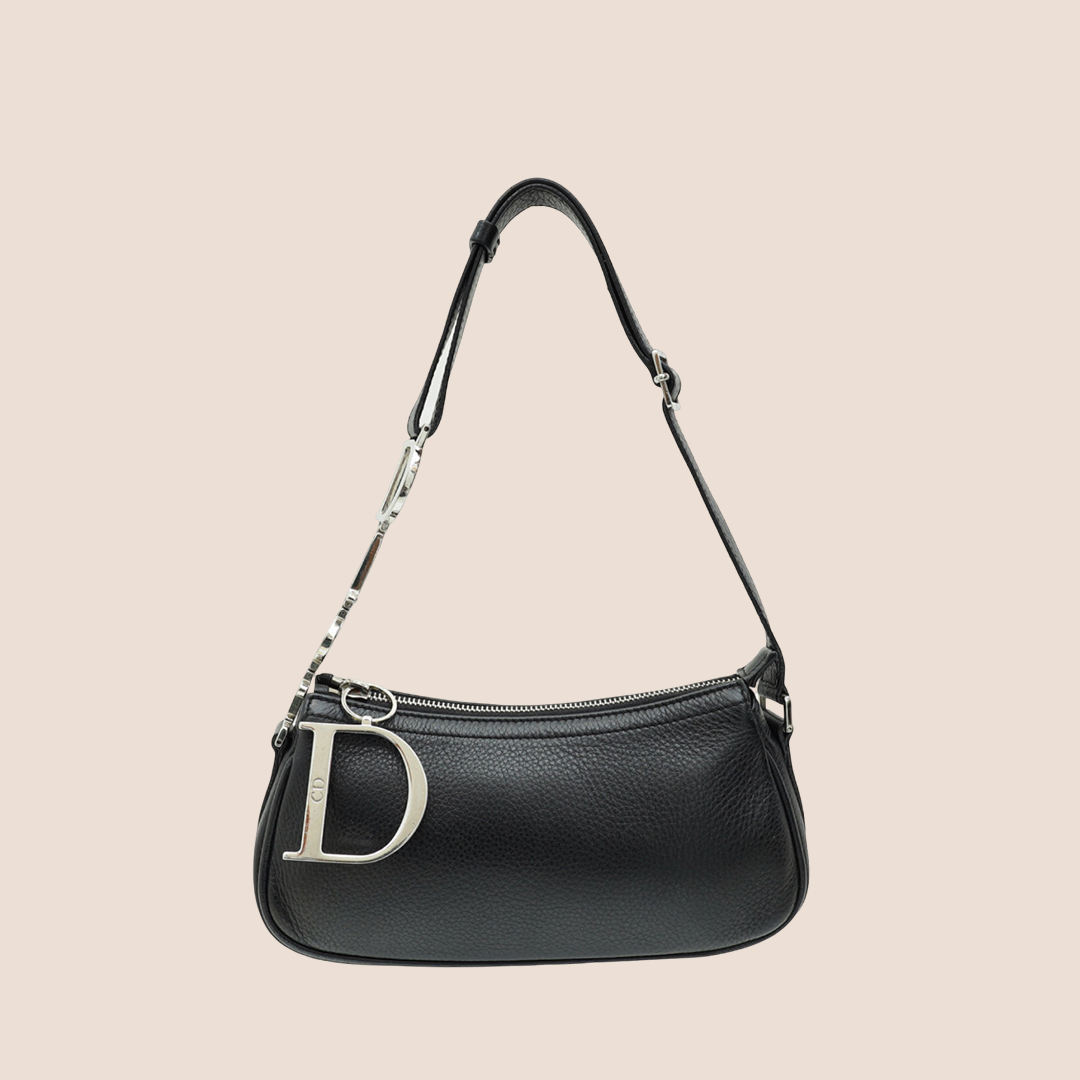 CHRISTIAN DIOR 2000 LOGO CHAIN BLACK LEATHER MINI SHOULDER BAG