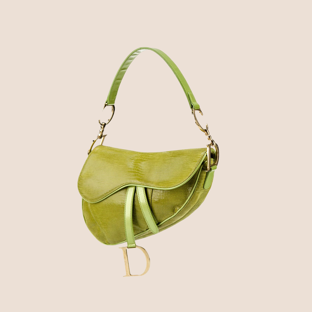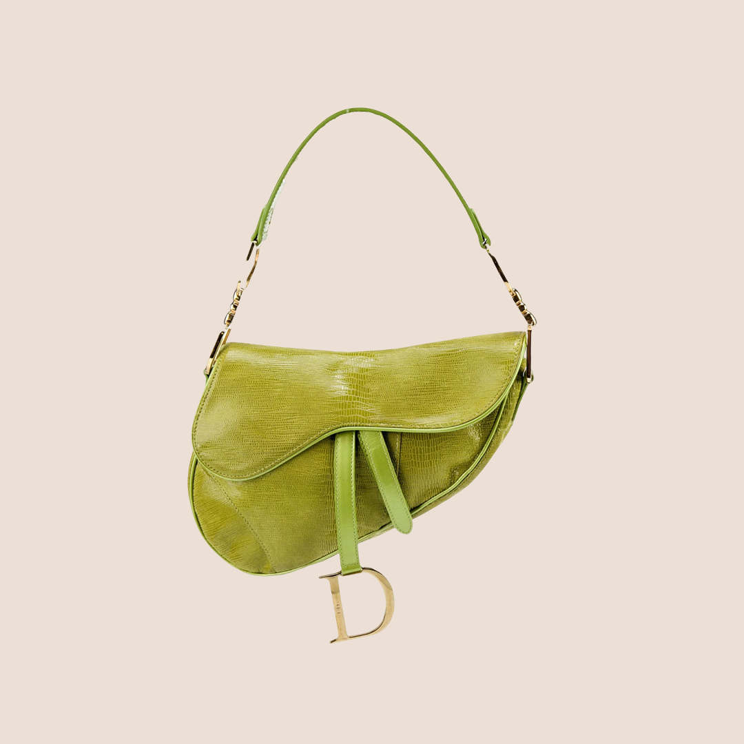 CHRISTIAN DIOR 2001 GREEN LIZARD EMBOSSED SADDLE BAG
