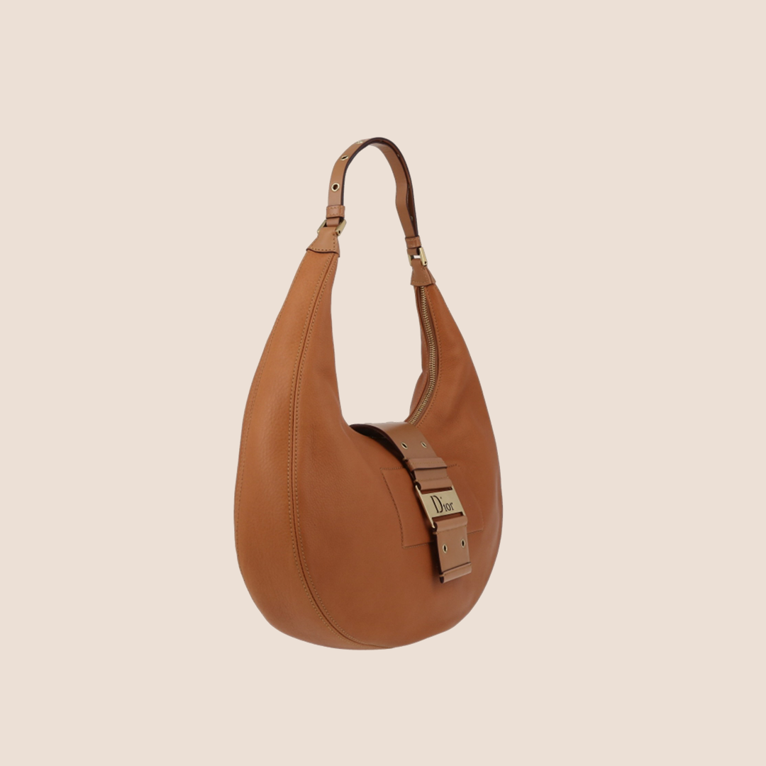 CHRISTIAN DIOR 2003 BROWN LEATHER STREET CHIC HALF MOON HOBO BAG