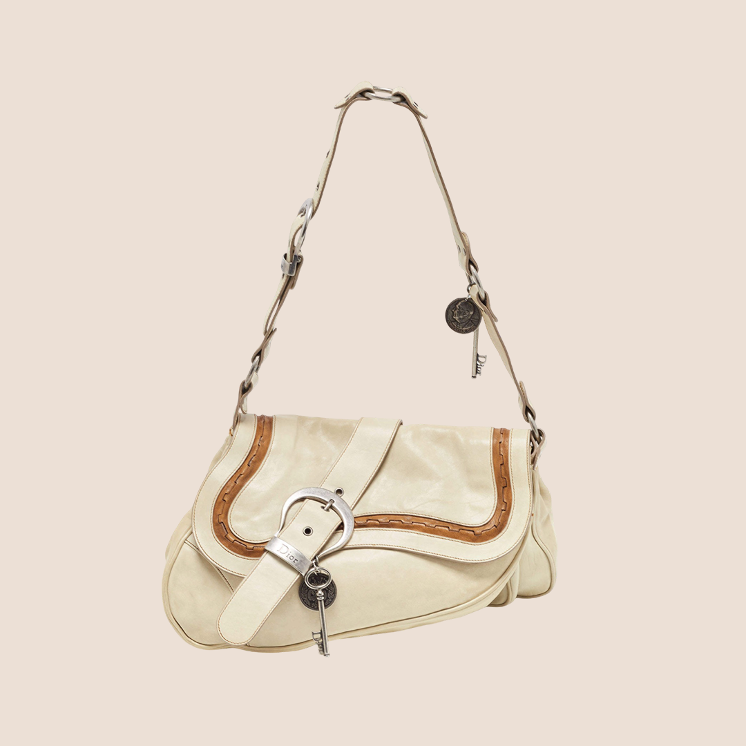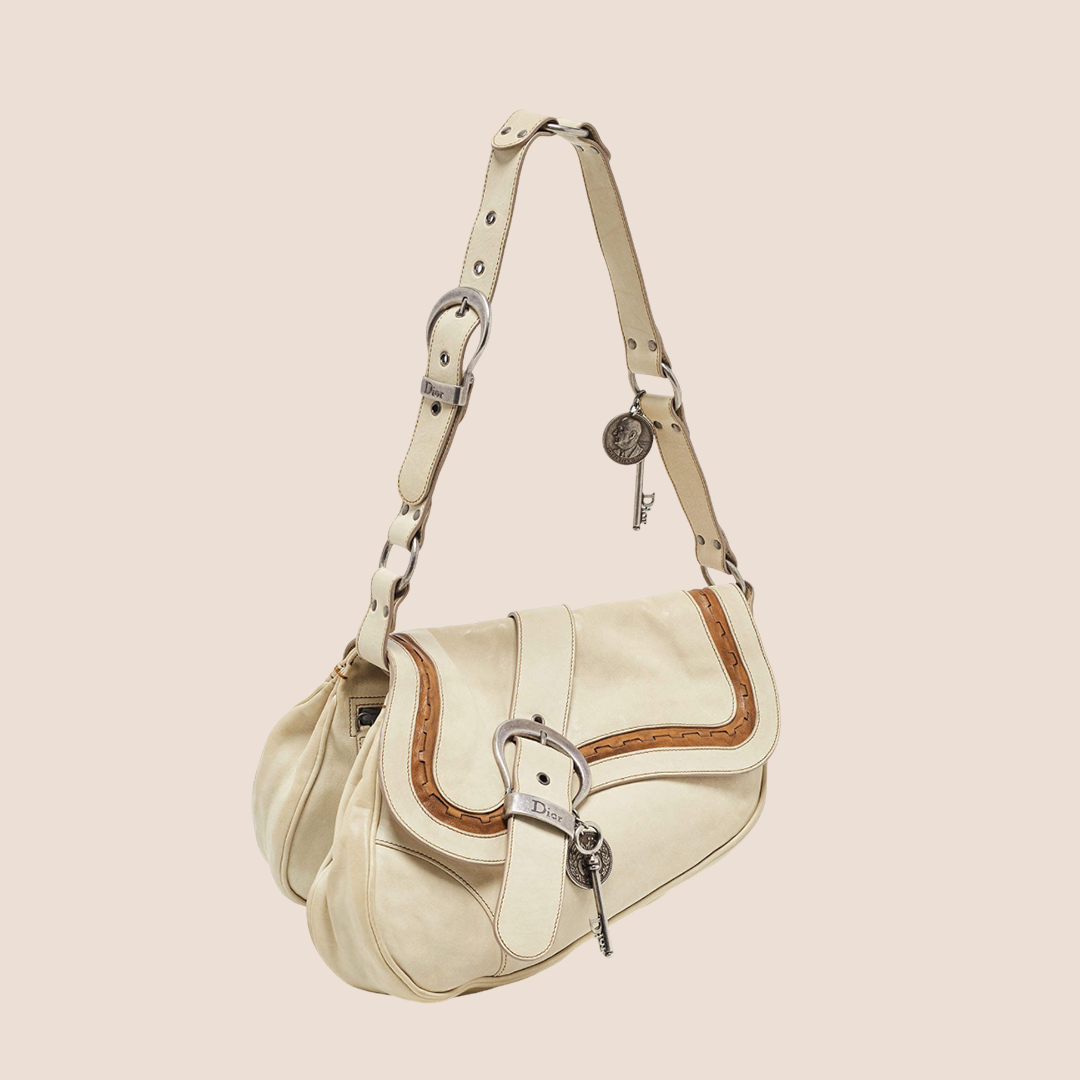 CHRISTIAN DIOR 2006 WHITE LEATHER GAUCHO DOUBLE SADDLE BAG