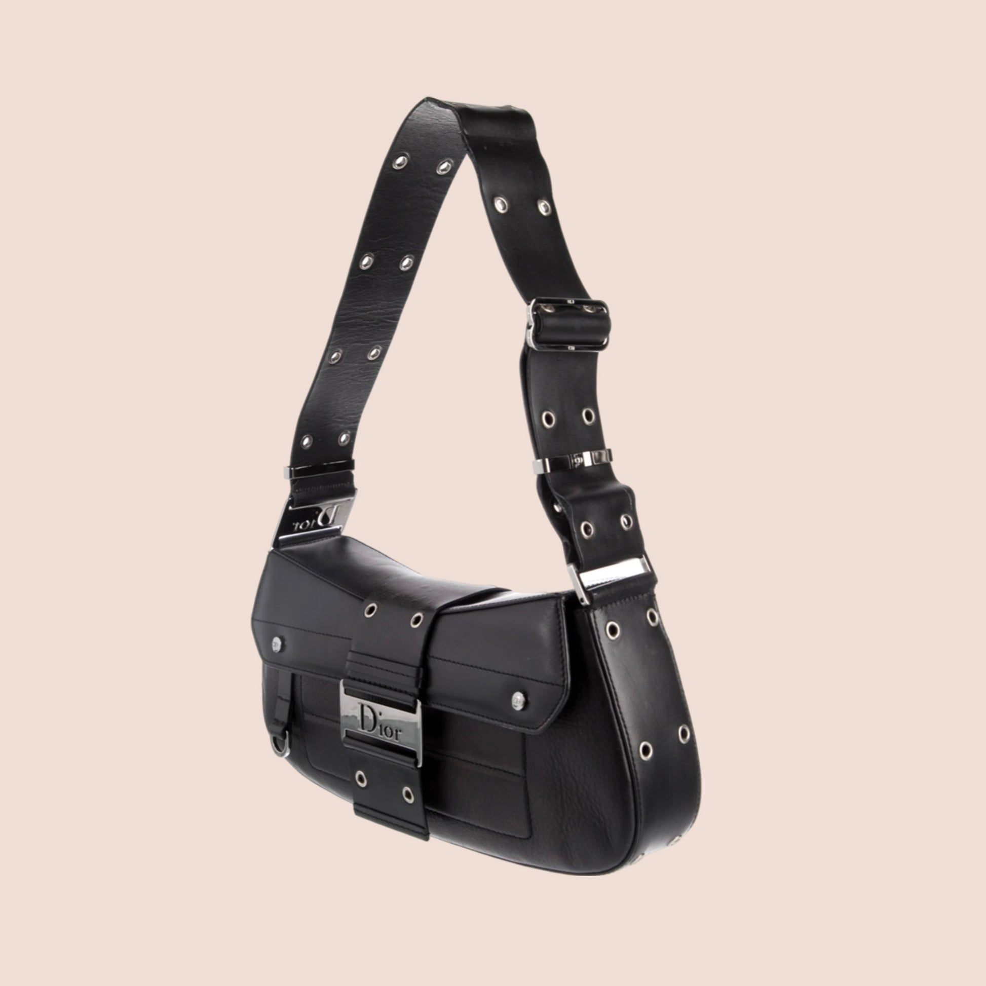 Vintage authentic Christian Dior Black Leather Street Chic Columbus Shoulder bag.