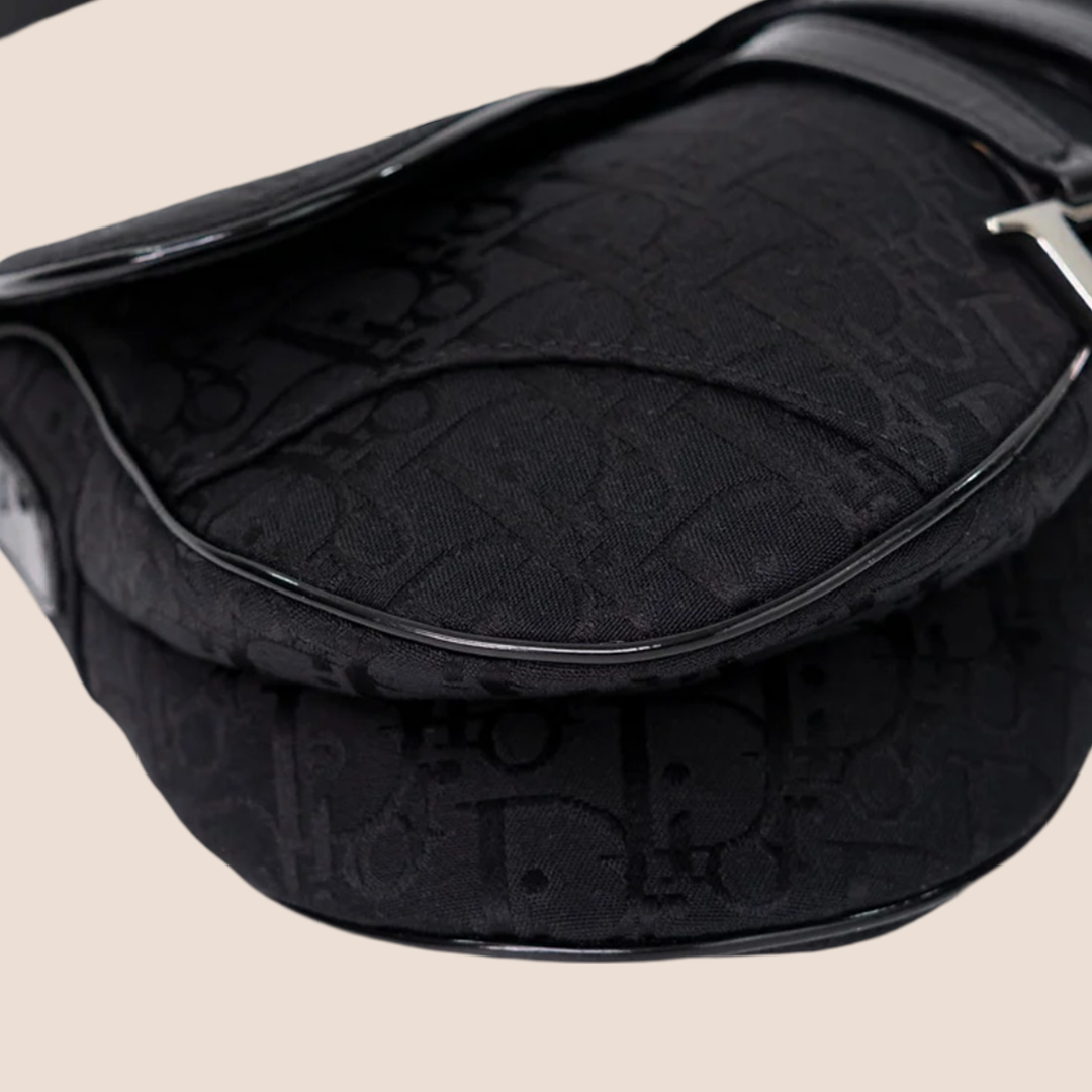 CHRISTIAN DIOR BLACK TROTTER CANVAS SADDLE BAG