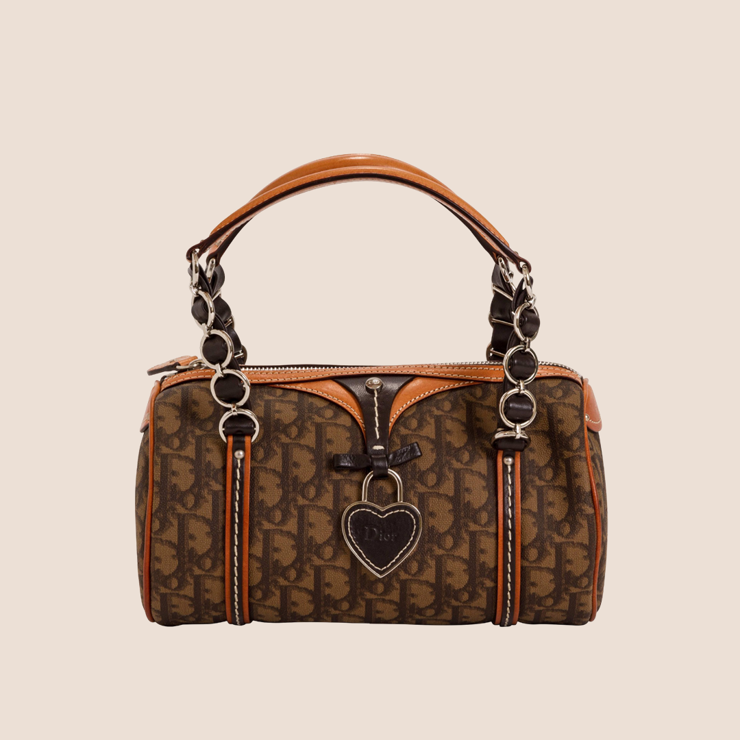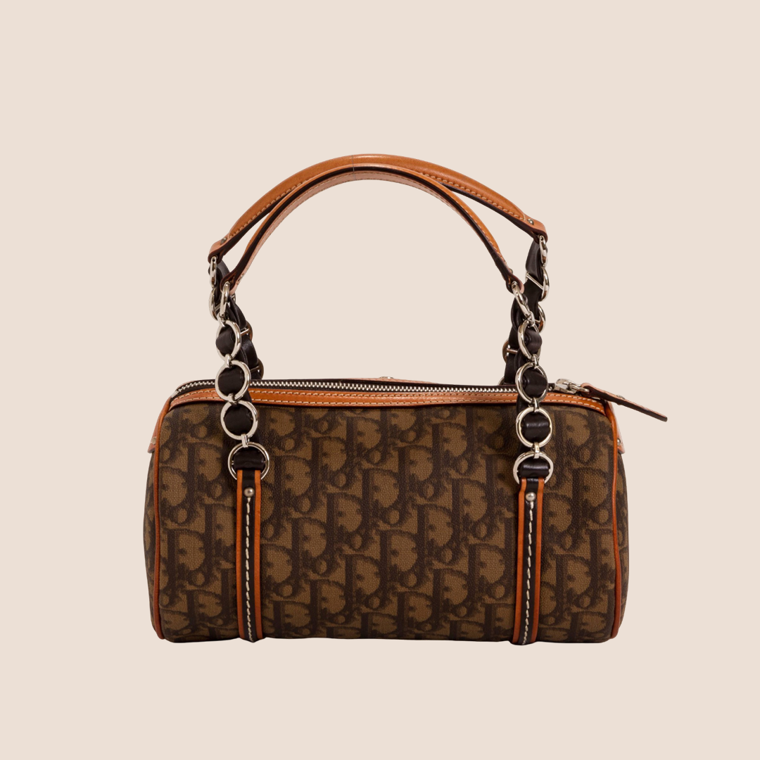 CHRISTIAN DIOR BROWN ROMANTIQUE TROTTER MINI BARREL BAG