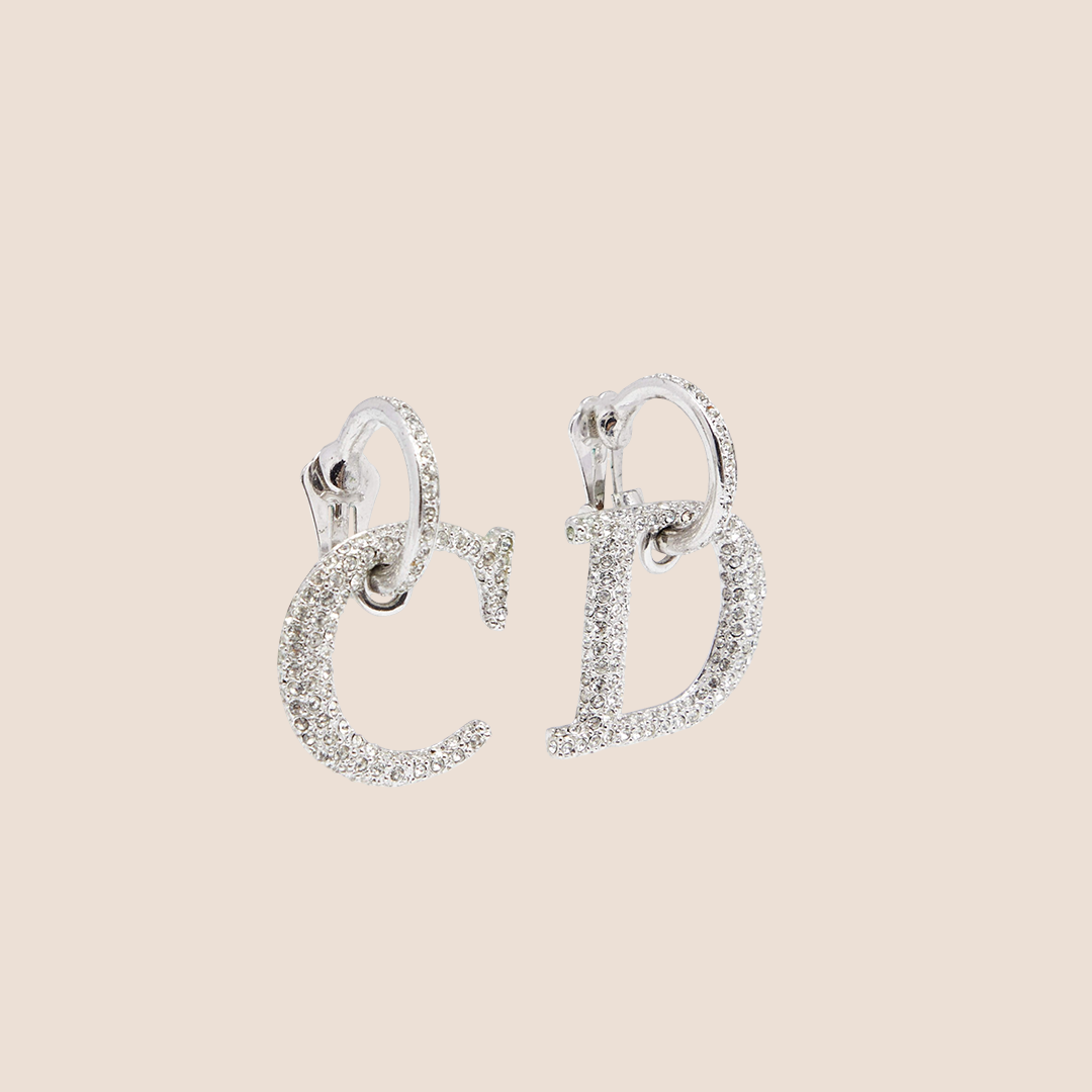 CHRISTIAN DIOR CRYSTAL LOGO C & D DROP EARRINGS