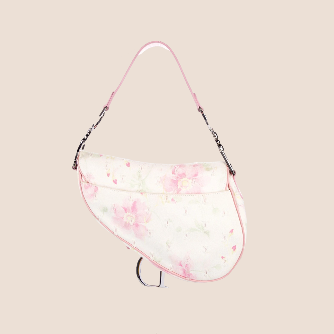 CHRISTIAN DIOR DISTRESSED PINK FLORAL SADDLE BAG