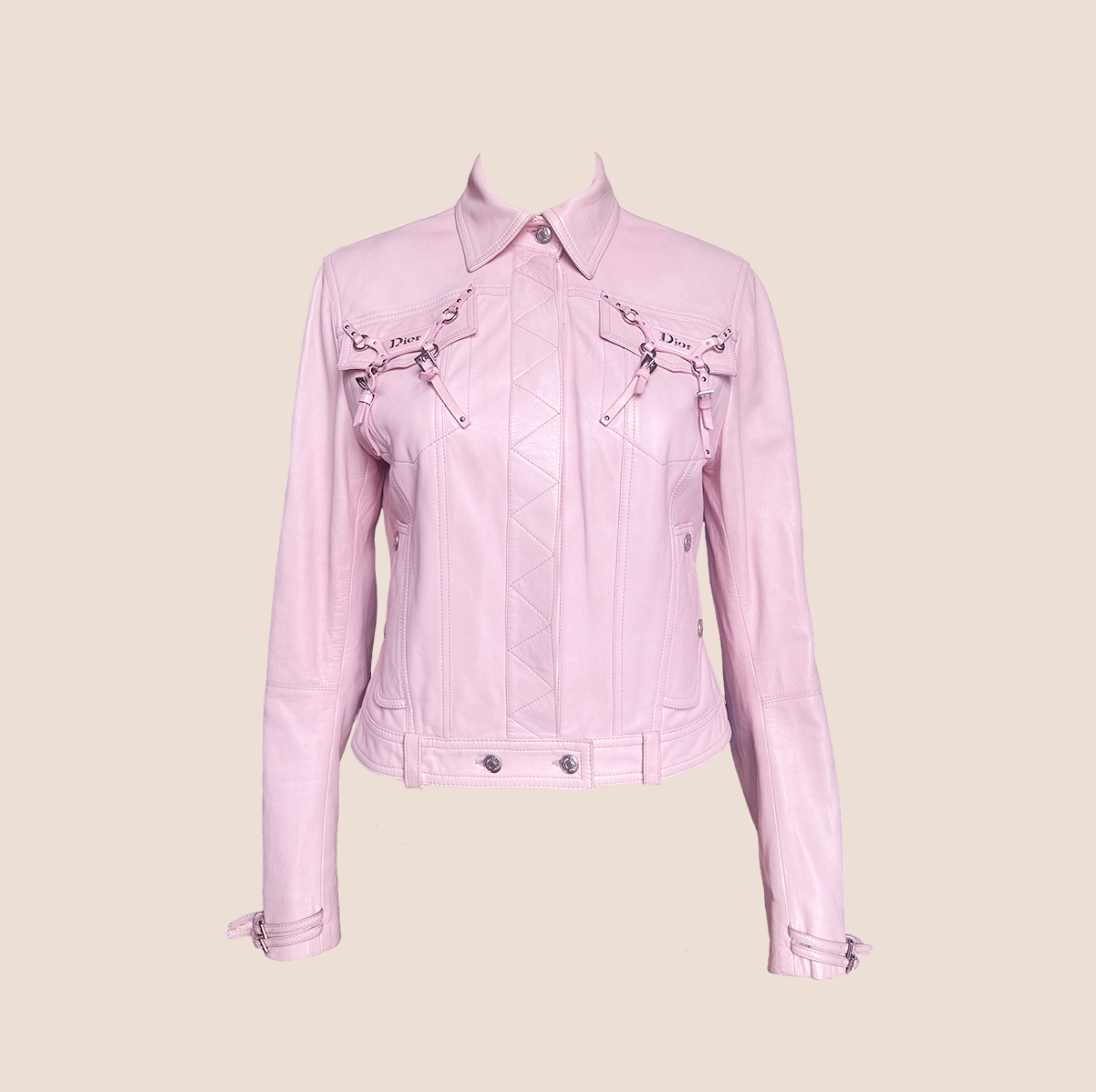 Vintage authentic Christian Dior Spring 2004 Bondage Pink Leather Jacket.