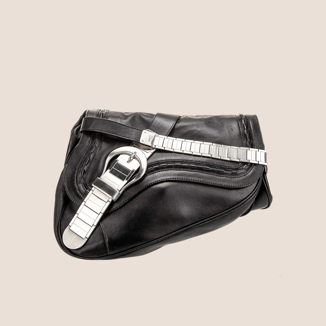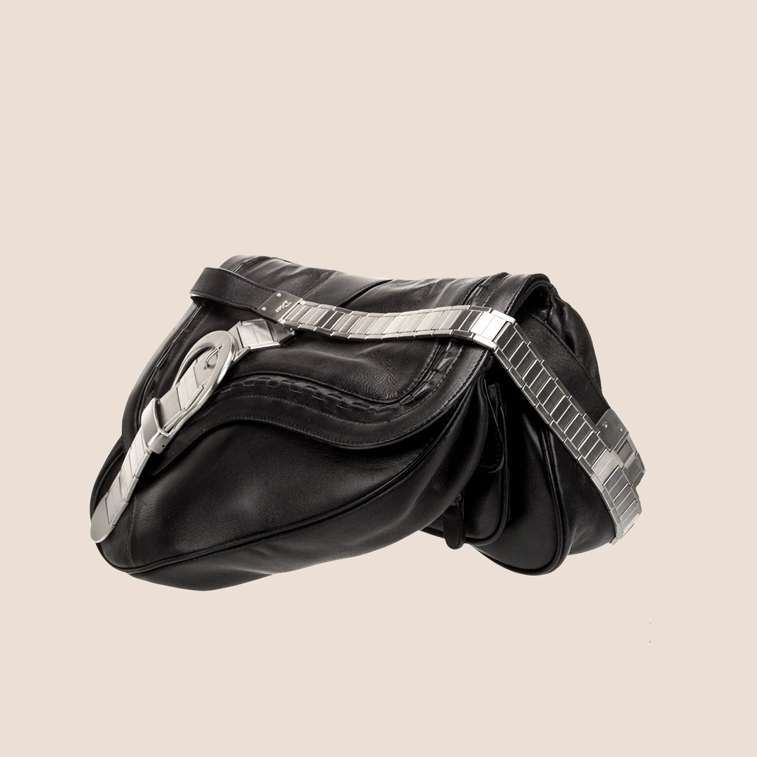 CHRISTIAN DIOR 2006 LIMITED EDITION WATCH CHAIN BLACK GAUCHO SADDLE BAG