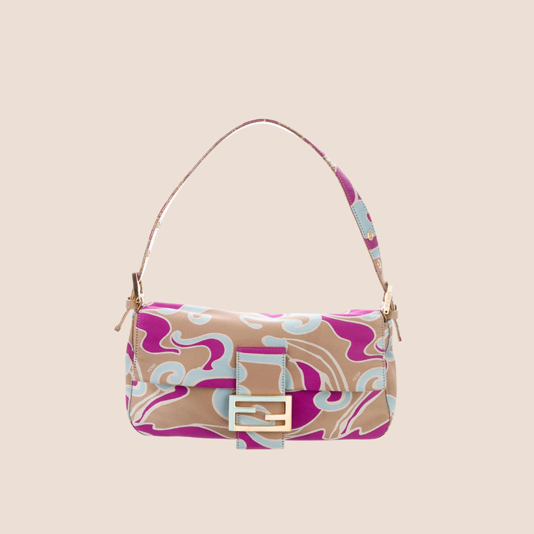 FENDI 2000 PSYCHEDELIC SWIRL PURPLE SILK BAGUETTE BAG