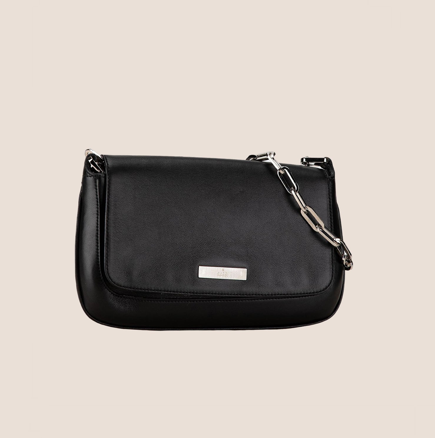 GUCCI 2002 BLACK LEATHER CHAIN FLAP BAG