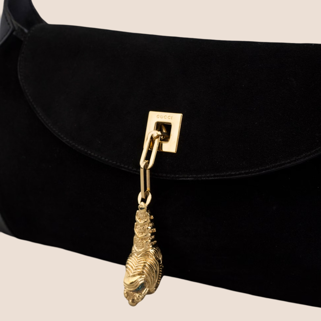 GUCCI BLACK SUEDE TIGER HEAD SHOULDER BAG