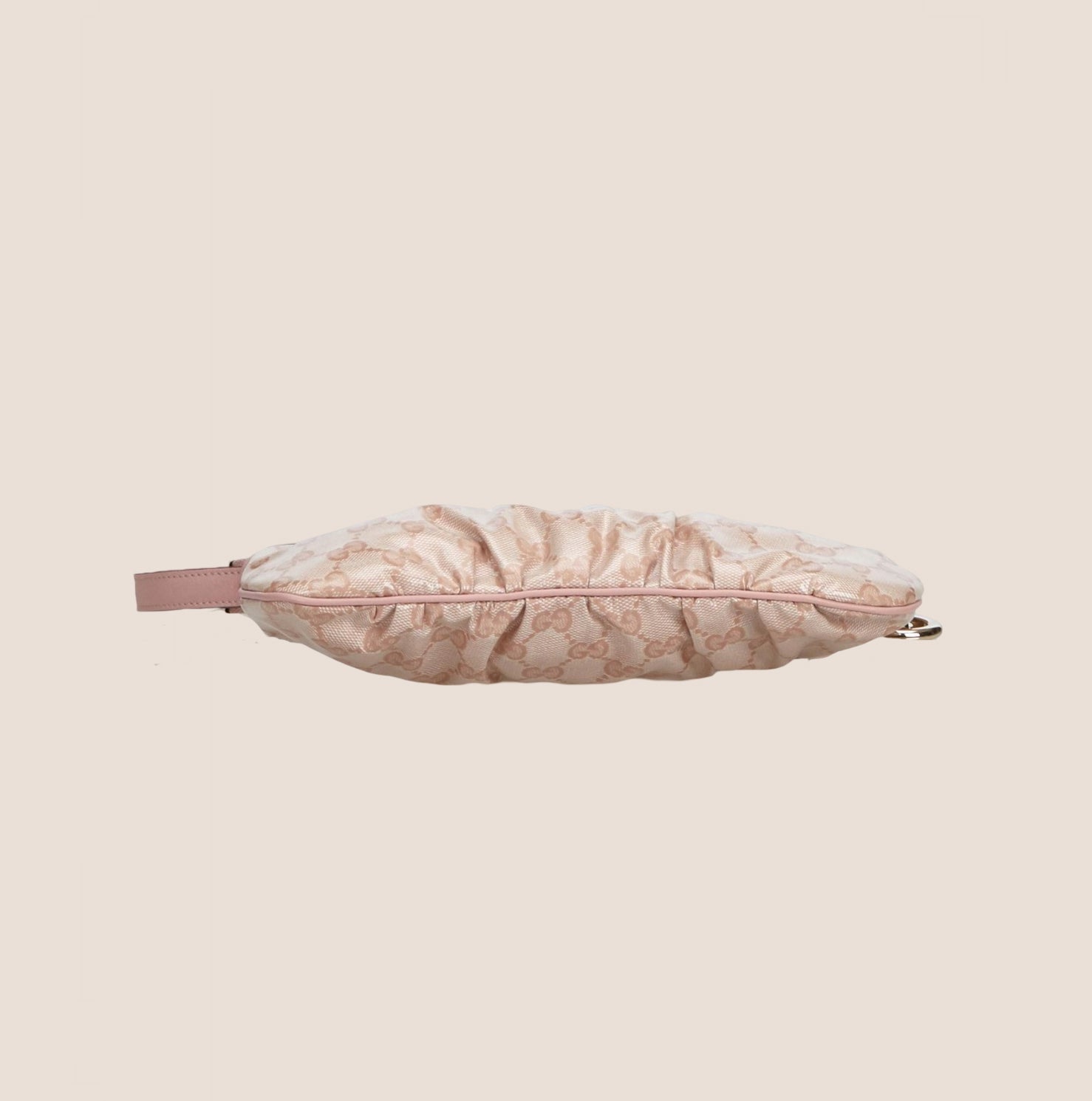 Vintage authentic Gucci Pink GG Supreme Crystal Canvas Baguette bag.