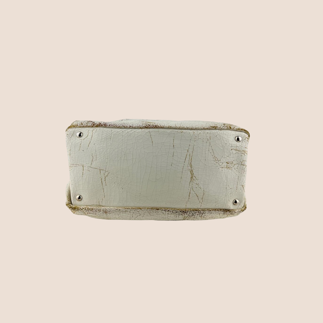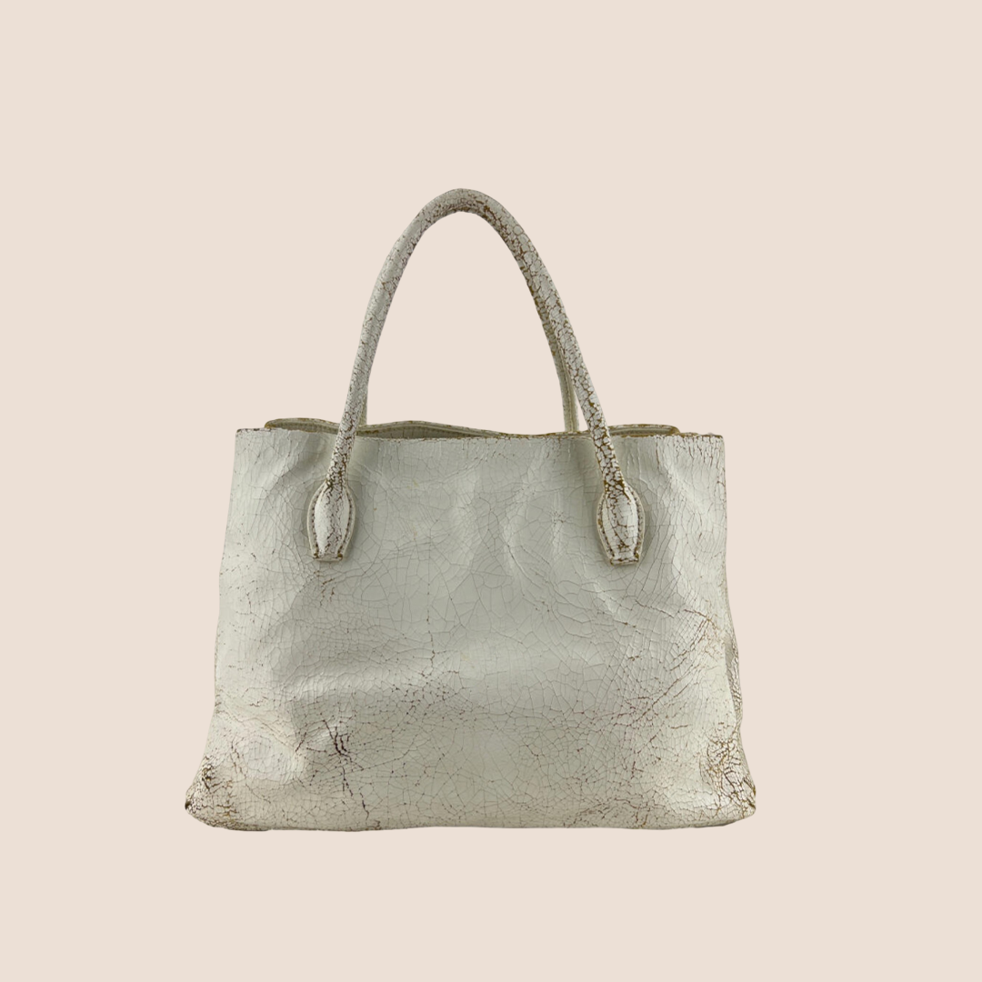 MIU MIU 2000 OFF WHITE AGED LEATHER TOTE BAG