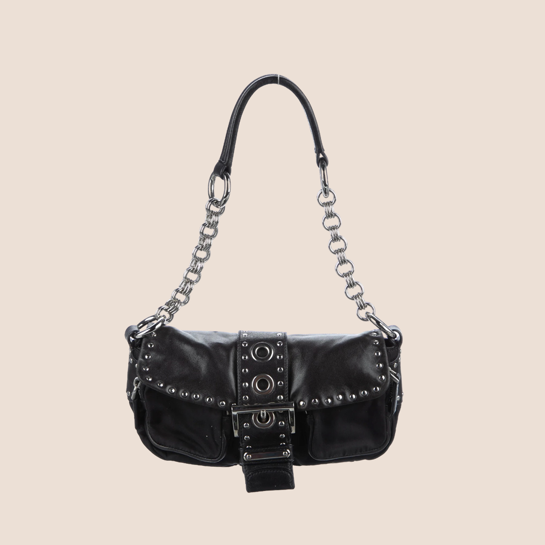 PRADA 2000 BLACK STUDDED NAPPA BUCKLE SHOULDER BAG