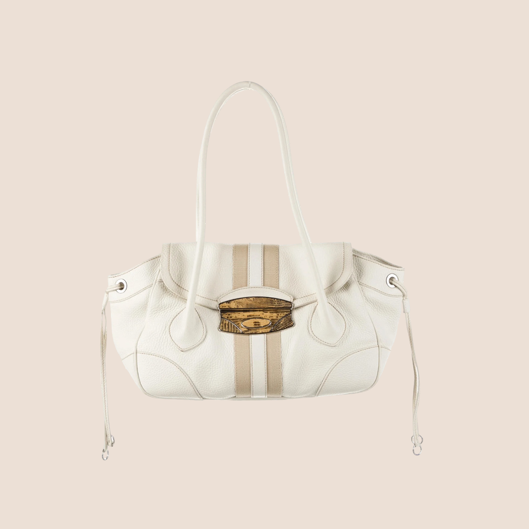 PRADA 2000 WHITE VITELLO LEATHER STRIPE BAG