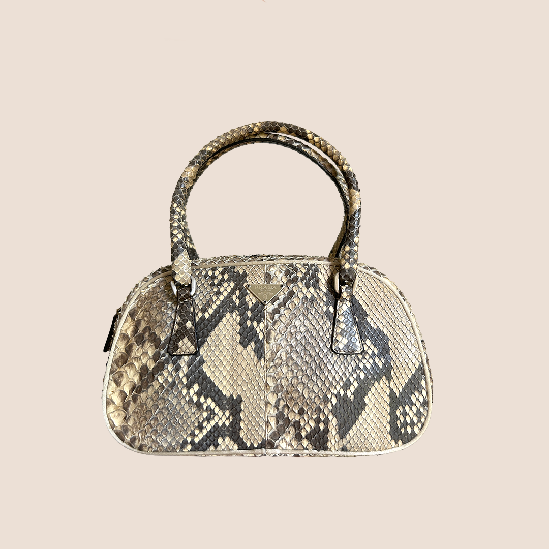 Vintage authentic Prada Python Mini Bauletto bag.