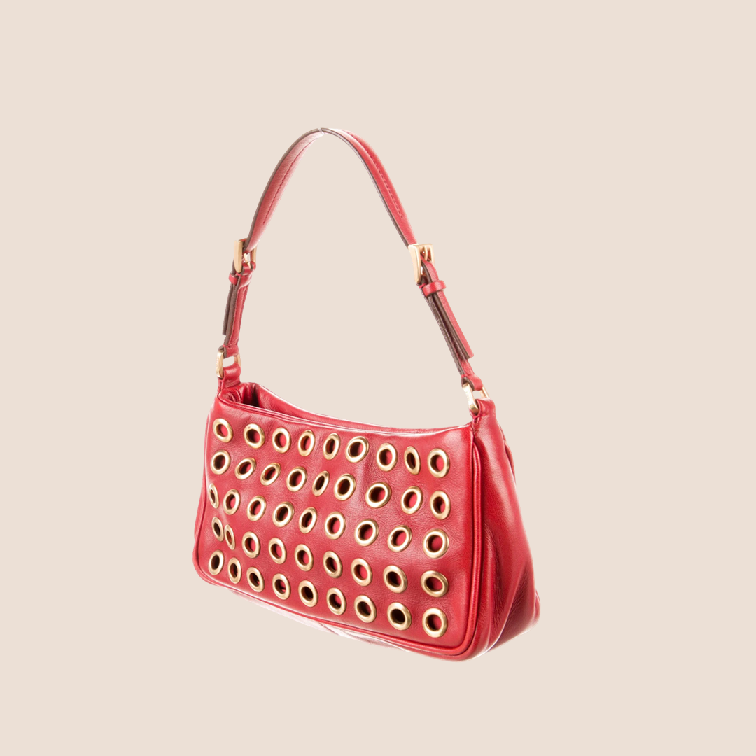 PRADA RED NAPPA GROMMET MINI POCHETTE BAG